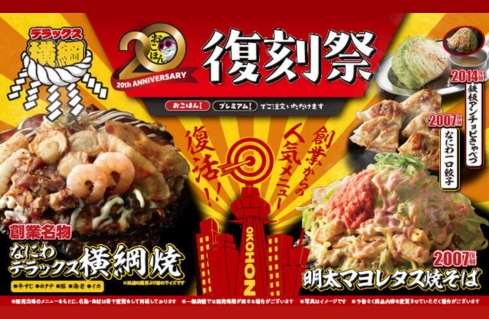 これからお楽しみの企画があるので、まだ全部は明かせないんですけどね(笑)現在は第1弾として、創業当時の名物商品やお客様から人気があった商品を期間限定で提供するフェア「復刻祭」を開催中です。牛すじやホタテ、エビなど海鮮が入った「なにわデラックス 横綱焼」や「明太マヨレタス焼そば」といった人気メニューを、3月2日まで「おこほんコース」と「プレミアムステーキコース」でお楽しみいただけます。ほかにも第2弾では、ご来店されたお客様に総額700万円分のクーポンが当たる「20周年スクラッチ」や、第3弾では、成人の日に合わせて、19歳から21歳の方を含むグループのお客様を対象にお会計金額から20%を割引する「ハタチのあなたと同い年割キャンペーン」(※現在は終了しています)を実施しました。